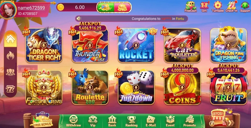 - Fortune Gems 2: A colorful slot game offering bonus rounds and steady rewards.